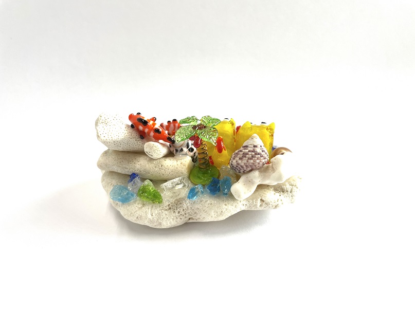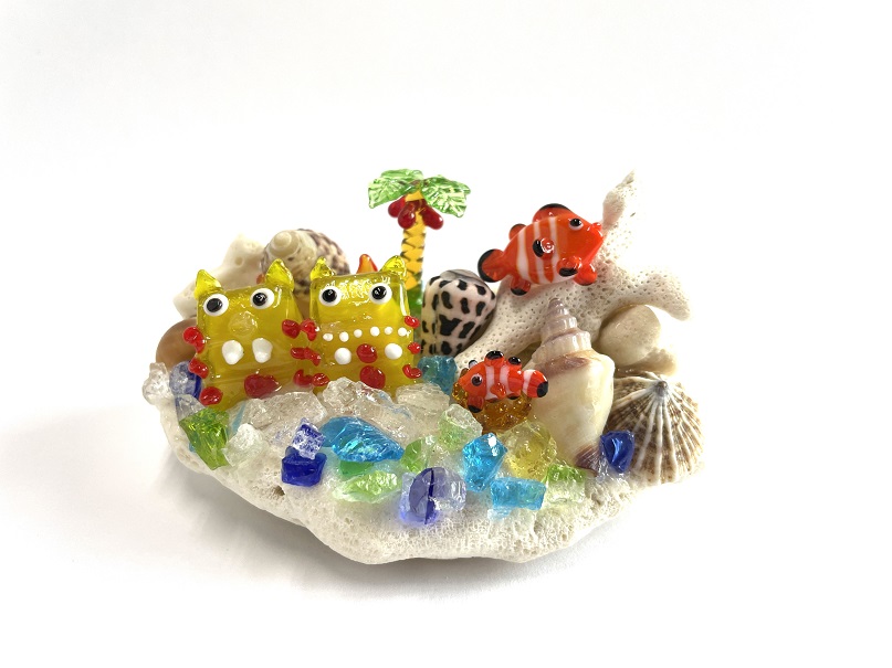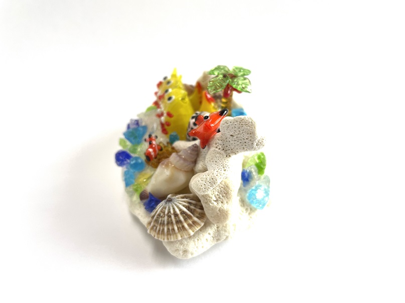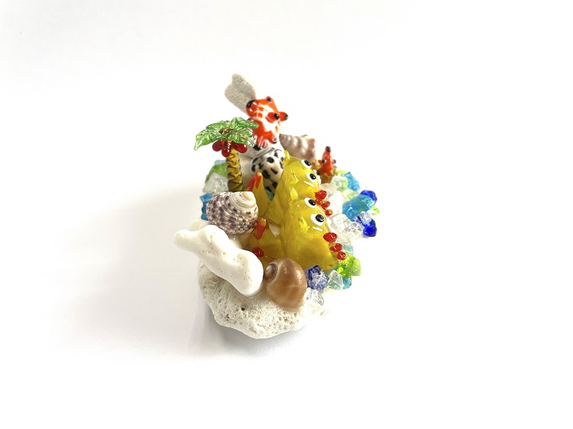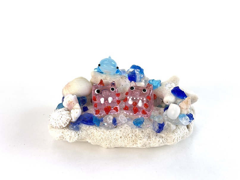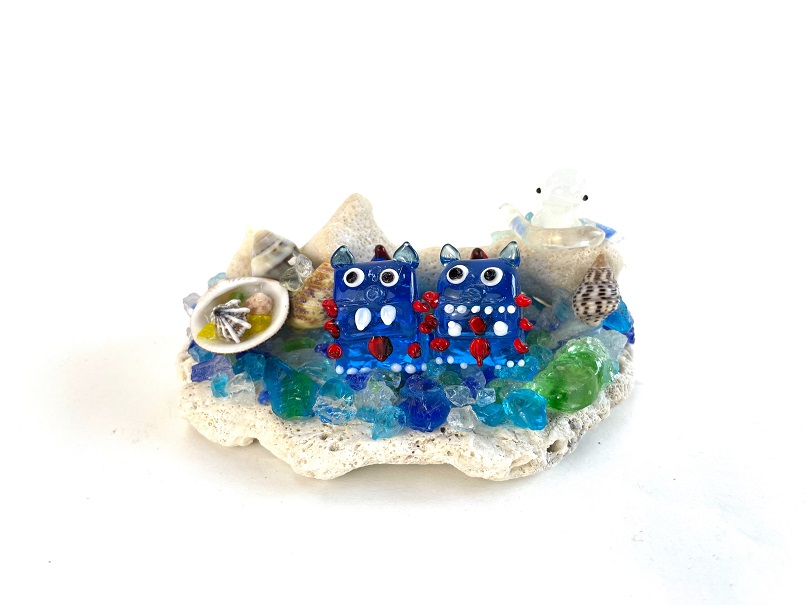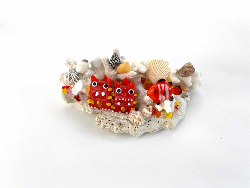 〜あなたの家のかわいい守り神〜手のひらサイズのサンゴにカラフルなシーサーと貝殻などでデコレーション。小さなお子様でもとても作り易い体験です。自由な発想でオリジナルシーサーを作ろう。