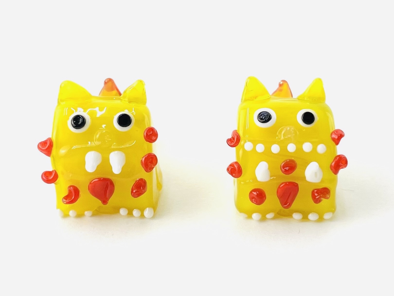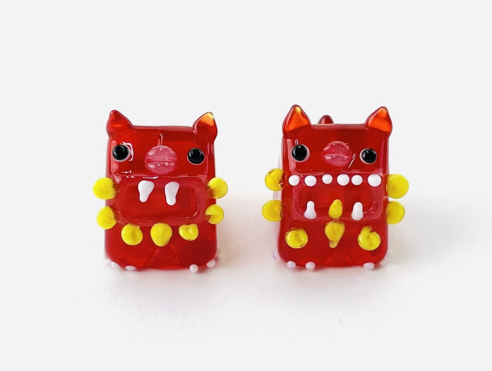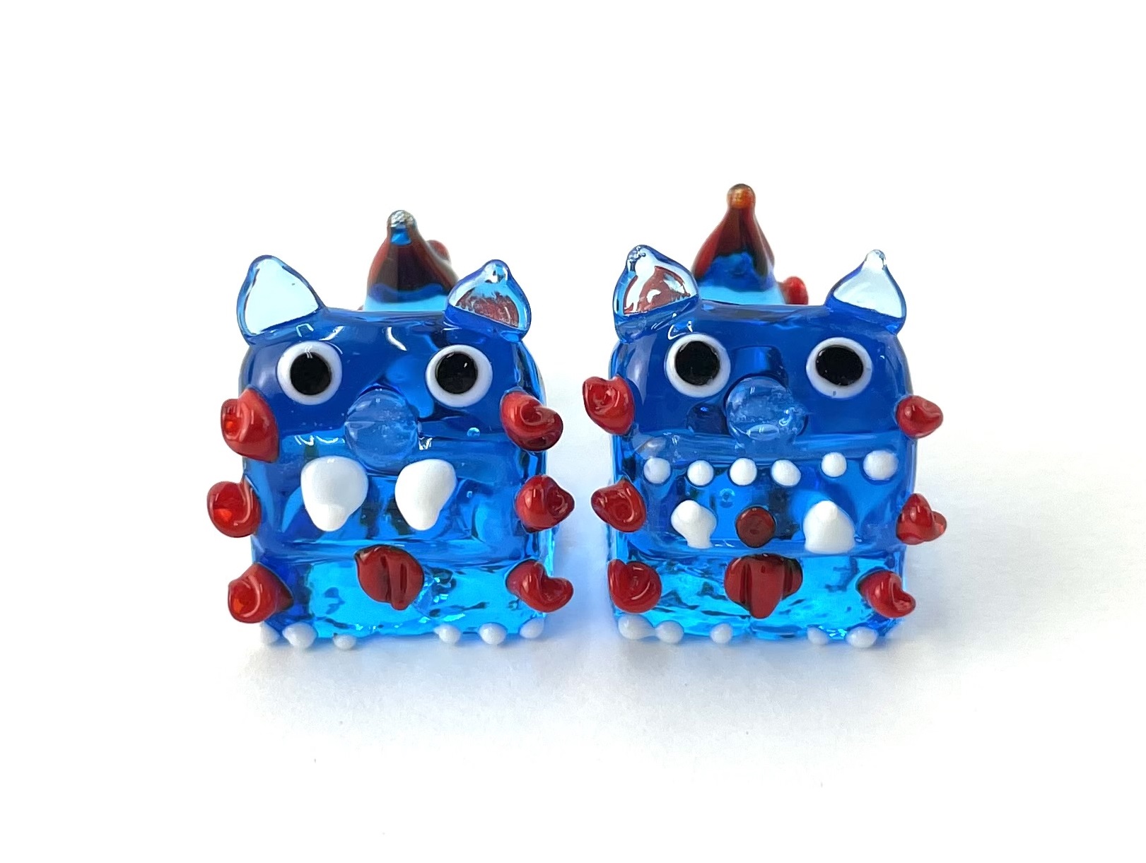 お好きな色のペアシーサーをお選びください。 サイズ:縦20mm×横20mm×奥行25mm(※1体あたり)、材質:ガラス